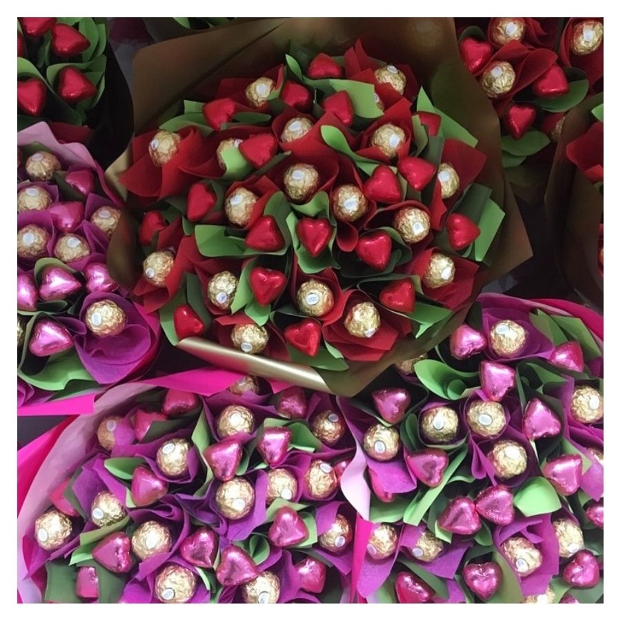 Take a look at our custom chocolate bouquet creations on social media