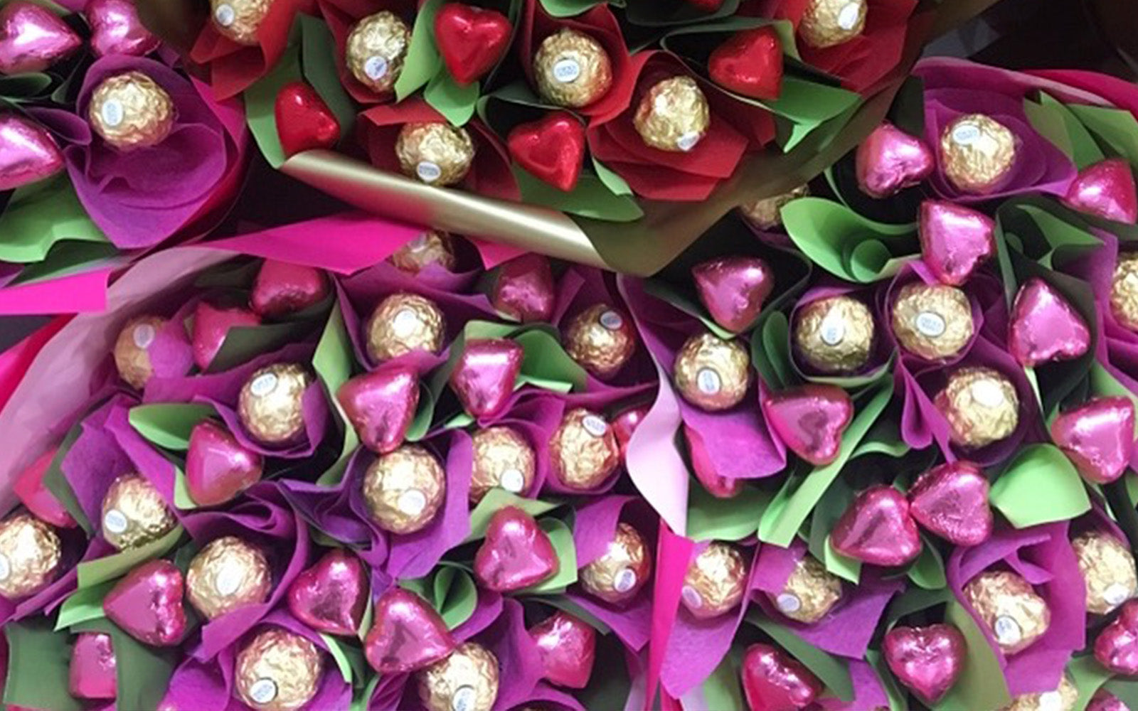 Take a look at our custom chocolate bouquet creations on social media